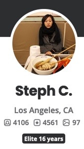 Steph Cha is a distinguished novelist who grew up in LA and has written at least one great book about it: Your House Will Pay, which I read earlier this year and liked a lot. Then I found on her website that she has written thousands and thousands of Yelp reviews. Mostly restaurants but not exclusively. Yes, she has “Elite” status, along with 27,700 “helpful” reactions and 818 “You’re cool” compliments.