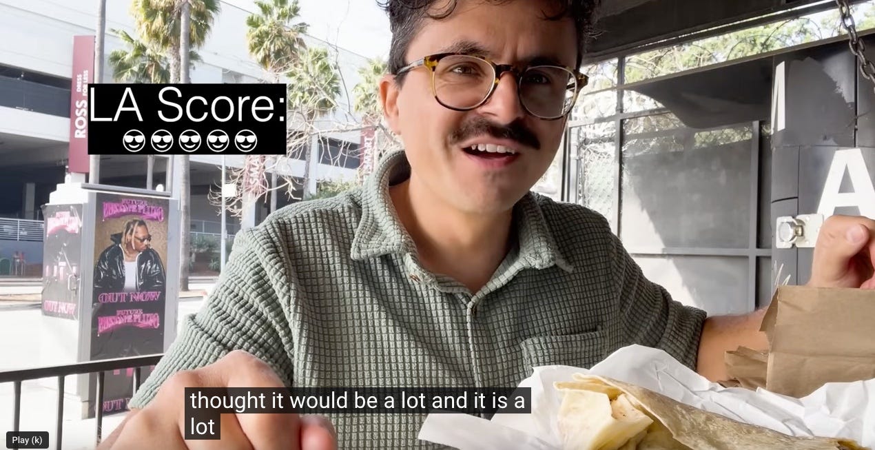 His restaurant choices are often bewildering: during the “foods invented in LA using only public transportation” challenge he goes all the way to the doomed Santa Monica Place Mall to get a smoothie from a food court chain I’d never heard of, then gives it a five out of five despite admitting it is terrible. But in the spirit of his own reviews I love them despite their imperfections. This one is a ground floor opportunity: he only started putting videos up about a month ago.